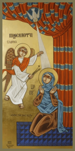The term “genoito,” translated as “be it,” is significant in understanding the Blessed Lady’s response to God. It indicates that Mary did not merely passively accept God’s command, as a subordinate might out of fear. Instead, she embraced her free will with great joy and appreciation. This Greek word is derived from the verb “ginomai,” meaning “to come into being,” highlighting that our Blessed Lady actively fulfilled God’s word and joyfully facilitated the Incarnation of the Divine Logos. Mary’s profound joy in God was such that she found no true joy in the world apart from Him, which explains why she received the Divine Logos with both joy and love. Her willingness to surrender herself to God positioned her as the perfect vessel for this Incarnation, underscoring that the Divine Logos would not have entered the world without her joyful and loving acceptance.